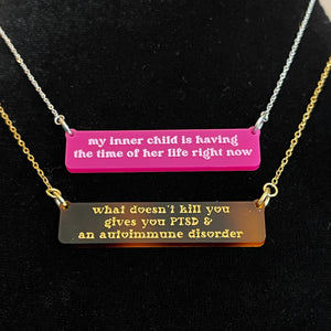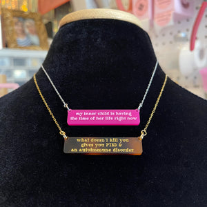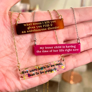 Wear your favorite quote or song lyric, in style! - with our custom quote bar necklace.