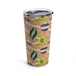 Our December Dopamine print is a retro mid-century meets 90s retro revival mashup with a groovy pink and green swirl background adorned with vintage-style ornaments in aqua, pink, and green, and a white pearl garland. If all you want for Christmas is some dopamine, this print will get you at least halfway there!