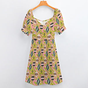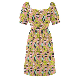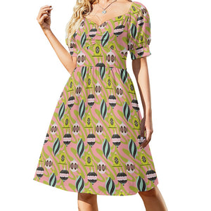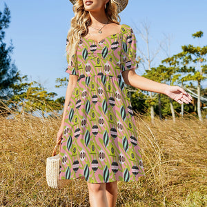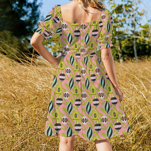 The dress features a zipper on the back for easy on and off. Above-knee length and flowy hem for a comfortable, lightweight fit, with a cinched waist for added femininity.