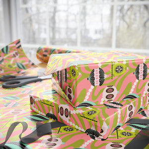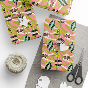 Our December Dopamine print is a retro mid-century meets 90s retro revival mashup with a groovy pink and green swirl background adorned with vintage-style ornaments in aqua, pink, and green, and a white pearl garland. If all you want for Christmas is some dopamine, this print will get you at least halfway there!