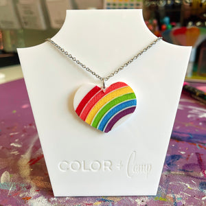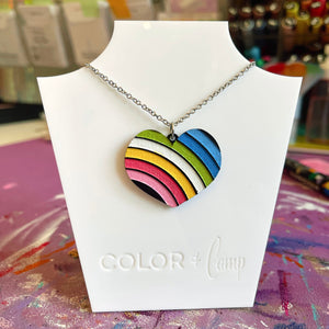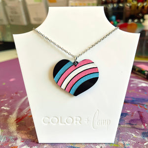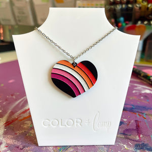 Our Retro Heart pride pendant is laser cut and carefully hand-painted with your choice of Pride flag.