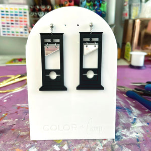 Nothing says eat the rich like indulging in a pair of over the top guillotine earrings. Remind the ruling class that things like single payer healthcare are guillotine insurance... in classically goth black and silver.