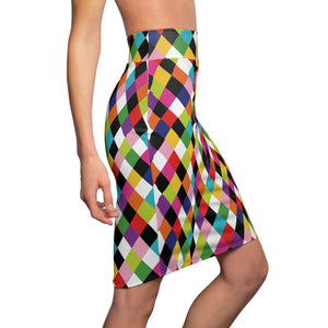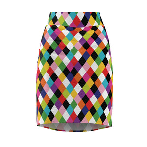 Our Harlequin Party print is chock full of colors - a whole rainbow's worth, and then some. A dazzling diamond checkerboard of vibrant rainbow colors. Designed to coordinate with many of our t-shirt designs and jewelry so you can easily pull together a fabulously vibrant fit.