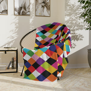 Harlequin Party - Retro Colorful Velveteen Blanket