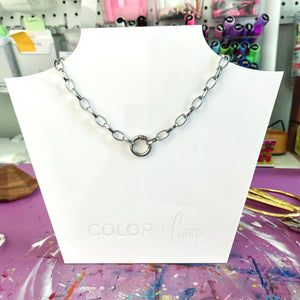 Our High Drama Steel Chain Necklace Base is designed to be eye-catching. The clasp is a little O-ring that is perfect for dangling your favorite pendants and charms. Browse our pendants and charms to build your own custom necklace!