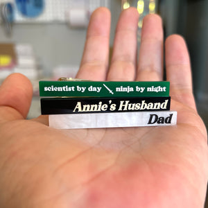 Our custom accessories are perfectly personalized! Choose from a rainbow of acrylic colors to make this handcrafted, custom engraved tie clip just right for it's recipient.